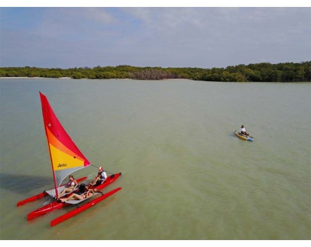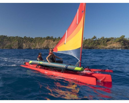 Navigating has never seemed so easy. When the wind blows, the Tandem Island flies over the water with its large, easy-to-maneuver sail.