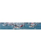 The rigging is made up of a 4.5 m² sail with a windsurfing-type sheath mounted on an epoxy mast and an aluminum boom. Designed with a slight luff circle to open the chute, it is fully battened and made of transparent monofilm. The tackles with which it is fitted allow it to be adjusted efficiently and to keep control of the boat in a wide spectrum of conditions. The 3.8m² Dacron sail was designed for clubs. It can be rigged on the mast and boom of the 4.5m² monofilm rigging.