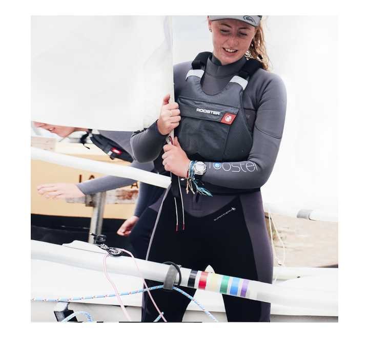Le gilet présente une coupe haute au niveau de la poitrine, offrant une grande liberté de mouvement ainsi qu’un accès facilité au crochet de trapèze. Il est équipé de sangles réglables au niveau des épaules et de la poitrine, permettant un ajustement adapté à une large gamme de morphologies. Les boucles de serrage sont dissimulées sous des gaines en néoprène, empêchant tout risque de desserrage accidentel au contact de bouts ou d’éléments du gréement.