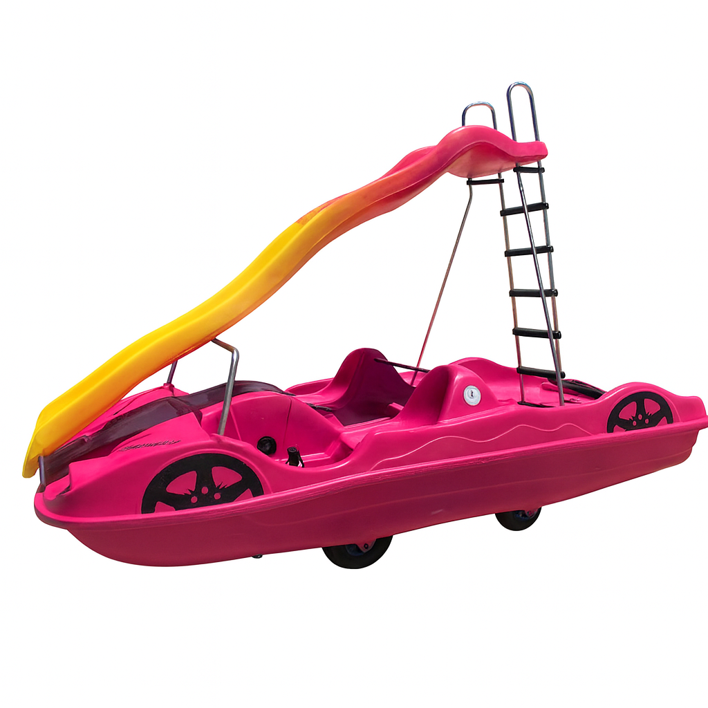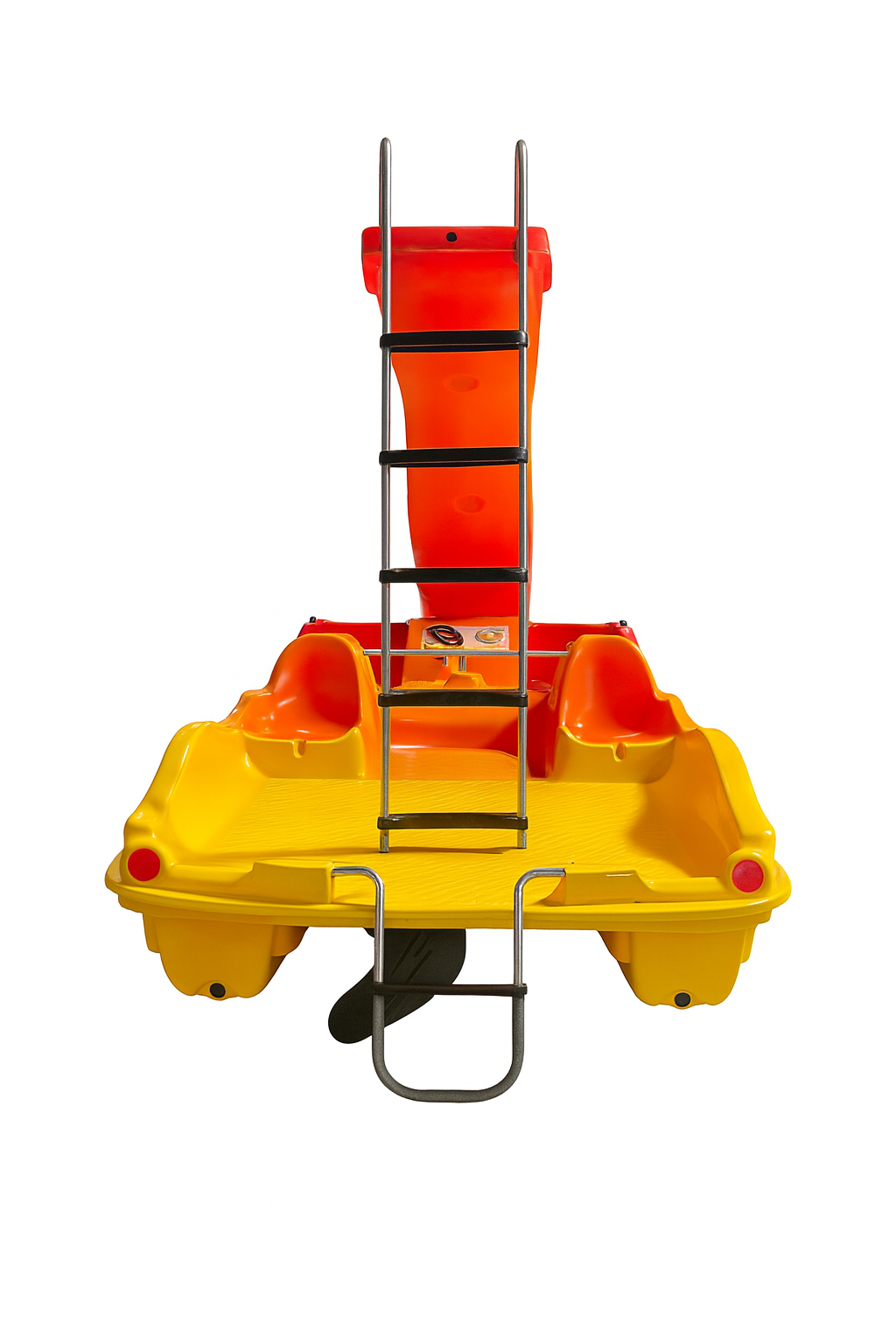 Le pédalo HydroFerrari de chez La Noria est un modèle emblématique alliant design sportif et plaisir nautique. Reconnaissable à sa forme inspirée des voitures de course et à son toboggan, il offre une expérience ludique et confortable pour toute la famille. Robuste, stable et coloré, il est idéal pour les plages, bases nautiques et locations balnéaires.
