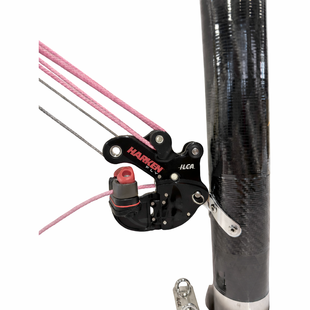 Système de hale-bas Harken ILCA, prêt à l’emploi avec des cordages et épissure sur la poulie centrale torsadée.