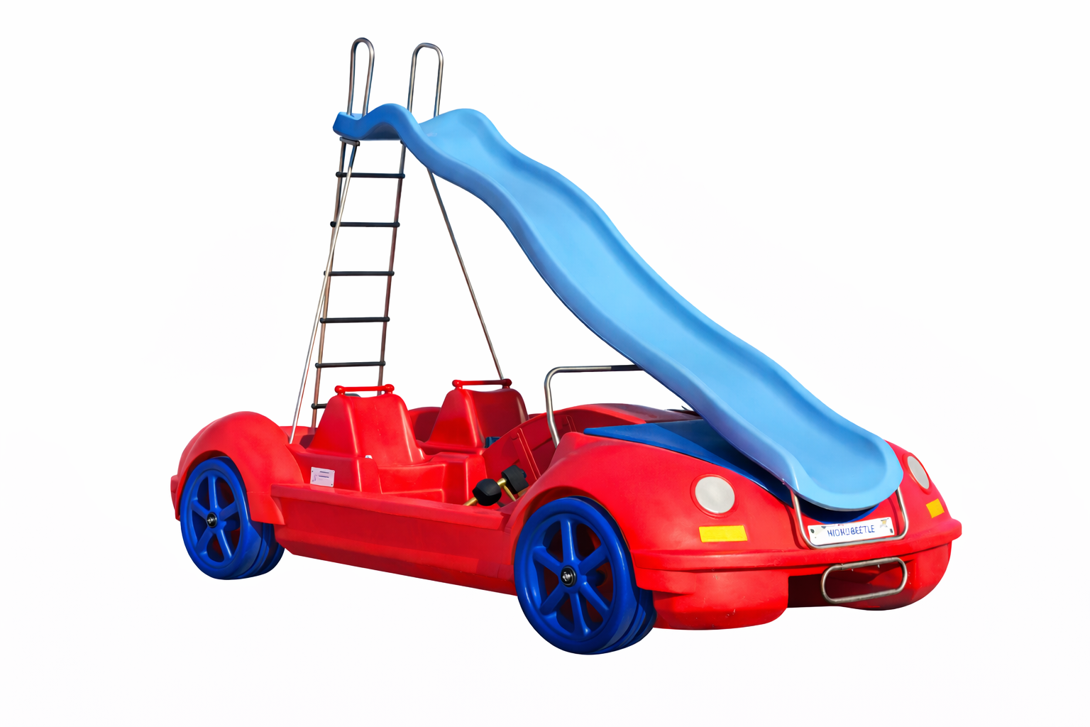 Le pédalo New Beetle de La Noria est un modèle au design iconique, conçu pour offrir une expérience nautique à la fois ludique, confortable et immédiatement reconnaissable. Inspiré des courbes emblématiques de la célèbre voiture compacte, il séduit par sa silhouette arrondie, son style rétro unique et ses grandes roues moulées qui accentuent son identité automobile.