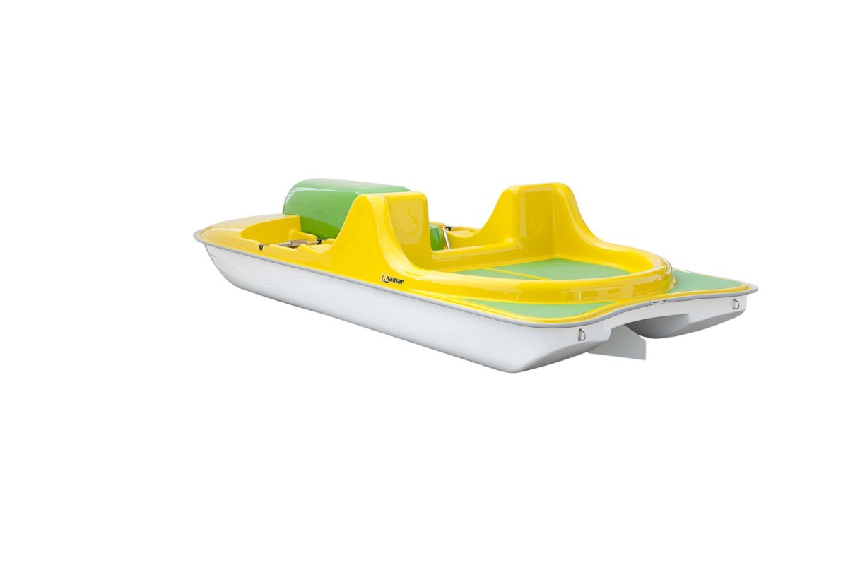 Le WALKER de chez Samar est un pédalo trois places en polyester, conçu pour une utilisation intensive en milieu nautique de loisir. Sa coque en polyester stratifié offre une bonne rigidité structurelle, une résistance adaptée aux chocs légers et à l’abrasion, ainsi qu’un entretien relativement simple, ce qui en fait un modèle pertinent pour les bases de location comme pour un usage privé.