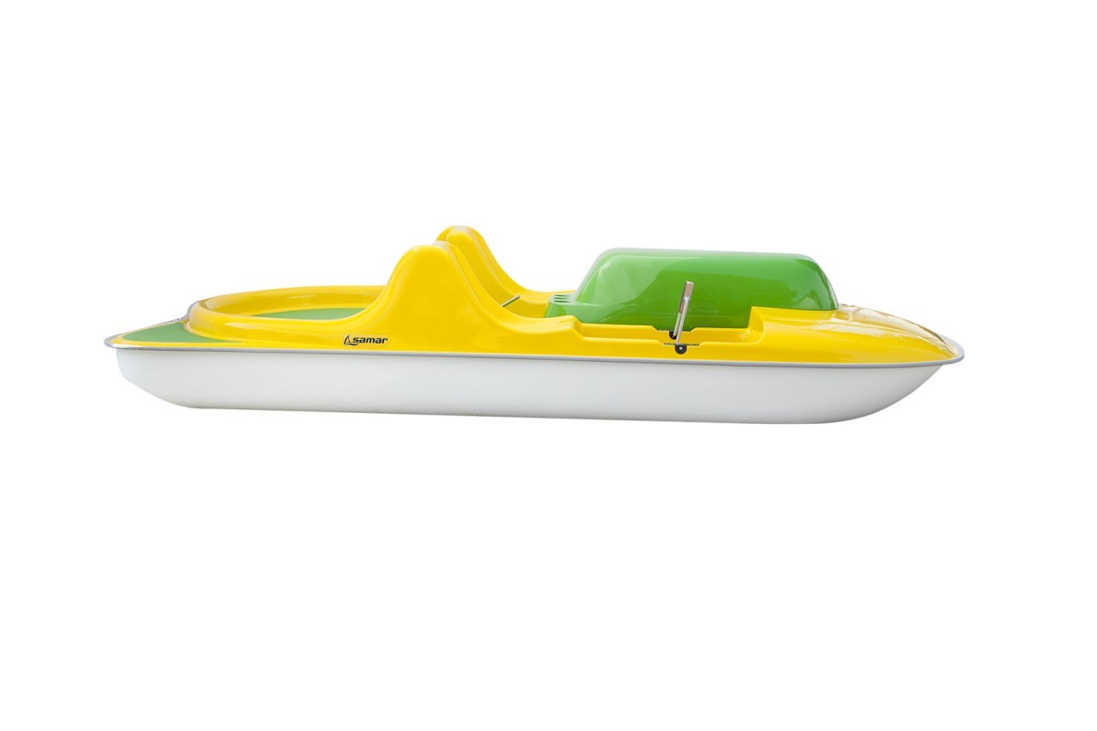 Le WALKER de chez Samar est un pédalo en polyester compact trois places, conçu pour les activités de loisir sur plans d’eau calmes. D’une longueur d’environ 3,60 m pour 1,60 m de large, il peut supporter jusqu’à 350 kg. Sa conception intègre un pont arrière arrondi, des surfaces antidérapantes et un gouvernail renforcé pour optimiser stabilité et sécurité. Il convient à un usage familial ou à une petite exploitation en location saisonnière.
